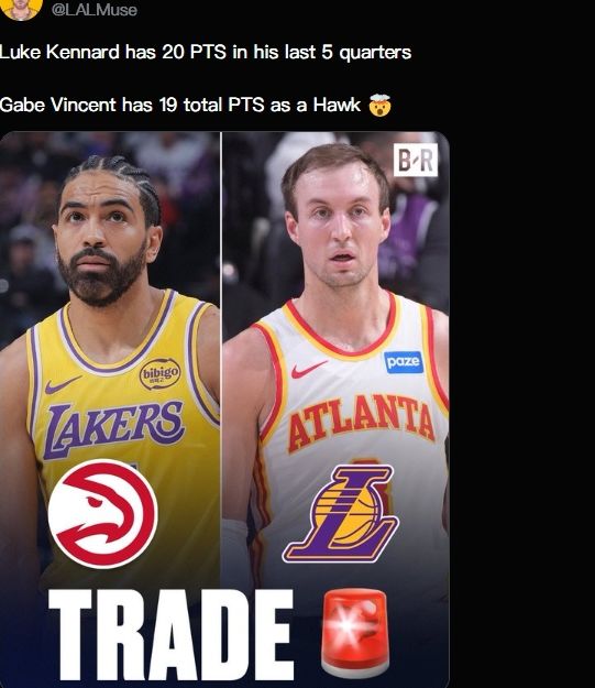 数据统计显示,自加盟湖人以来的9场,肯纳德场均贡献10.1分2.7板1.8助,三项命中率65/46/91%,真实命中率77%。反观文森特加盟老鹰8场共拿19分!湖人送出文森特和2032年次轮签,换回肯纳德这笔交易赚疯了。