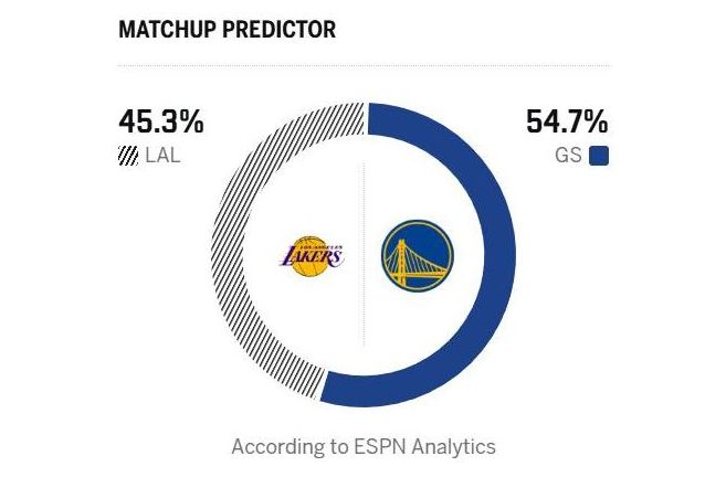 北京时间3月1日,NBA迎来两支顶级流量大队之间的对决,勇士坐镇主场迎战湖人,虽然库里、巴特勒缺席,让比赛失去观赏度,但是勇士主场作战,加上之前这套阵容爆冷击败掘金,加上湖人近期遭遇3连败,美媒ESPN赛前预测勇士胜率高达54.7%,湖人胜率只有45.3%。但是真正比赛开打后,外界才真正认识到两队之间天赋的差距犹如天堑。首节比赛,里夫斯爆发,湖人单节33-20赢下13分,次节比赛詹姆斯爆发,湖人单节再赢5分,第三节比赛东契奇爆发,湖人又赢9分,湖人最多领先32分!这也让ESPN的预测沦为笑柄!