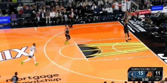 那就扣一个吧!吉莱斯皮抢到长篮板推反击 布克轻松飞扣!